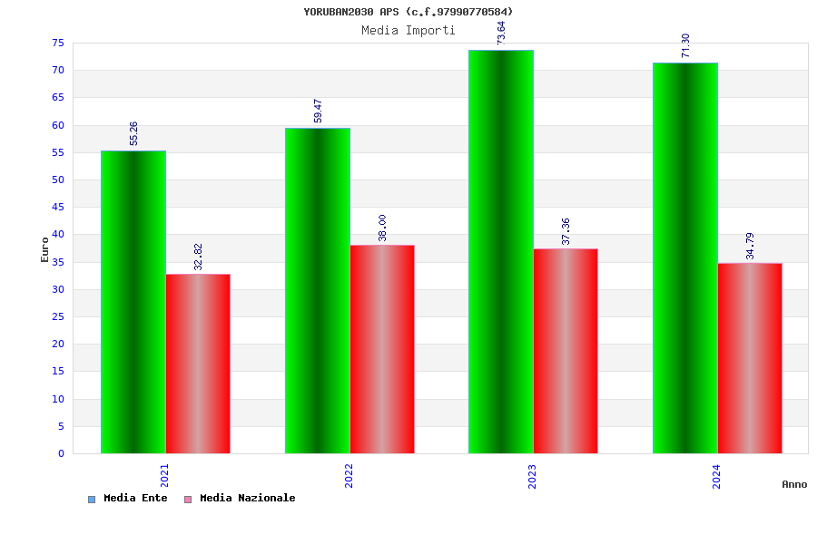 | Anno | Firme | Importi | Media | Naz. | Reg. | Prov. | Comu. |