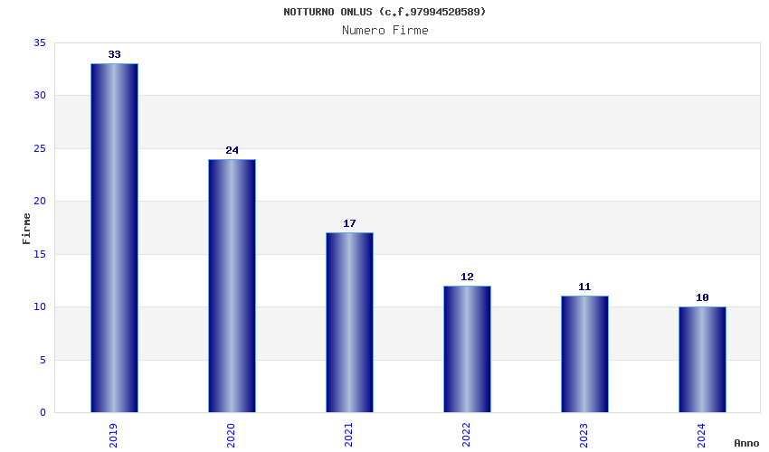| Anno | Firme | Importi | Media | Naz. | Reg. | Prov. | Comu. |