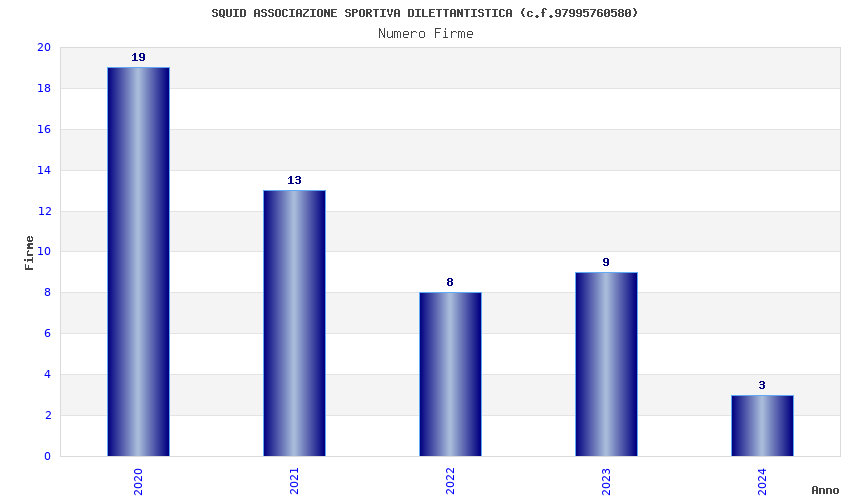 | Anno | Firme | Importi | Media | Naz. | Reg. | Prov. | Comu. |
