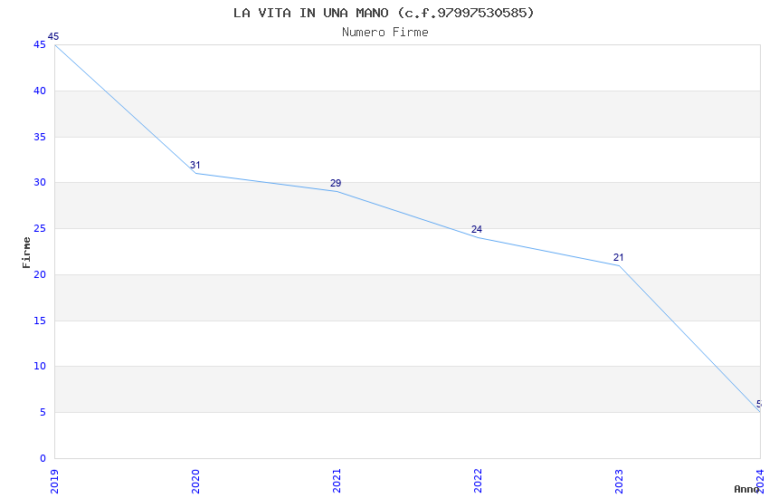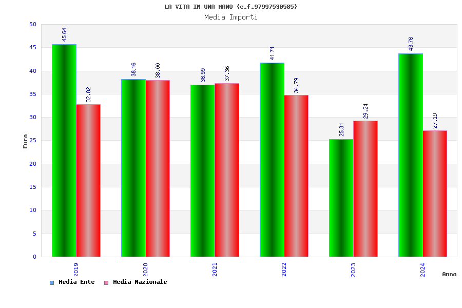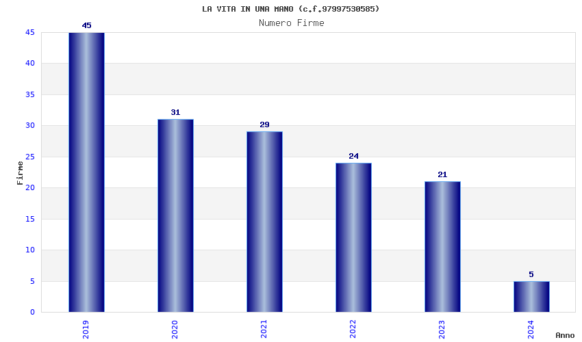 | Anno | Firme | Importi | Media | Naz. | Reg. | Prov. | Comu. |