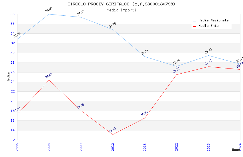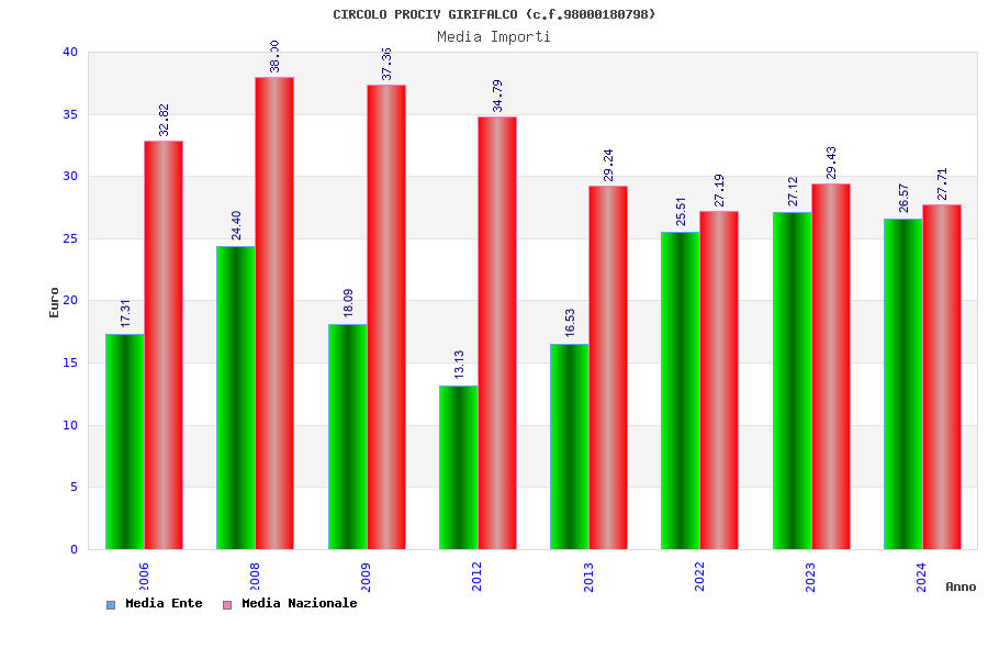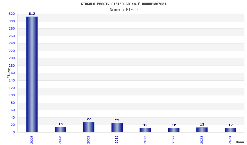 | Anno | Firme | Importi | Media | Naz. | Reg. | Prov. | Comu. |