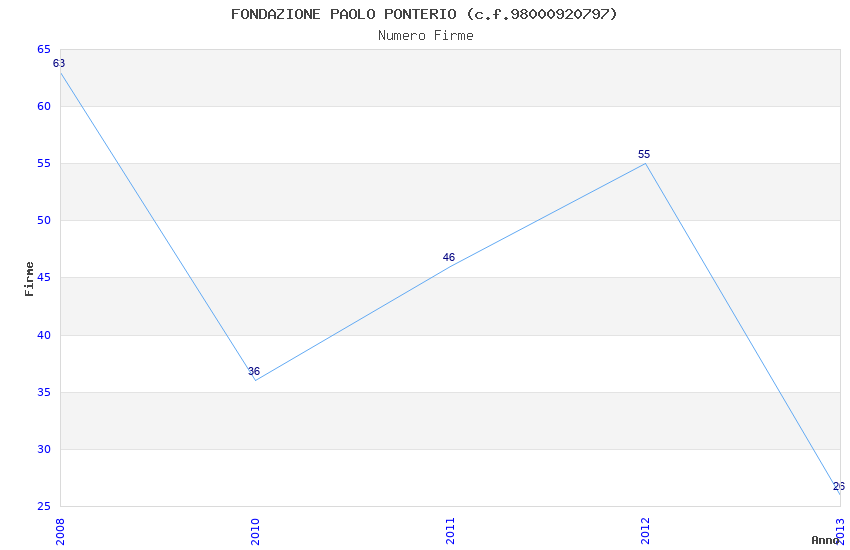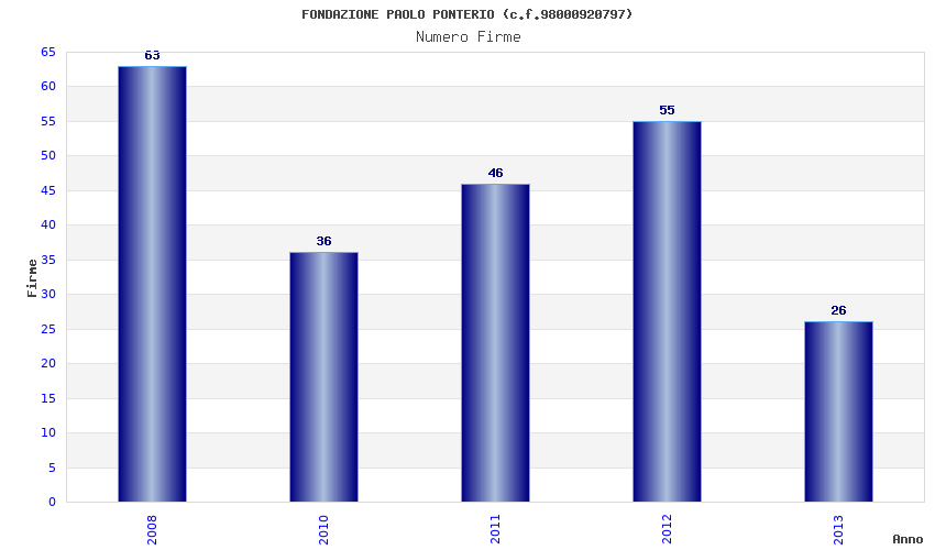 | Anno | Firme | Importi | Media | Naz. | Reg. | Prov. | Comu. |