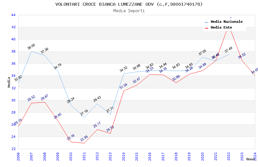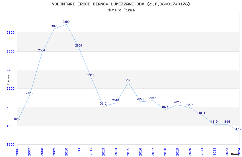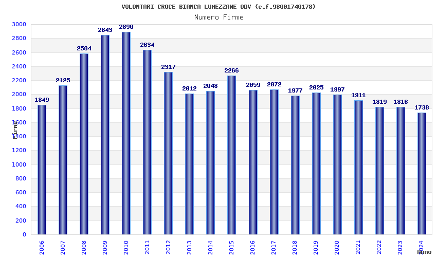 | Anno | Firme | Importi | Media | Naz. | Reg. | Prov. | Comu. |
