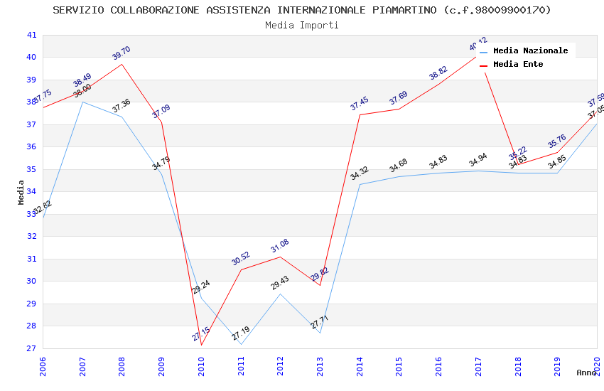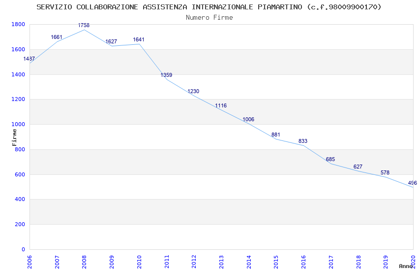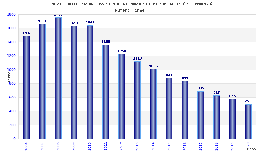 | Anno | Firme | Importi | Media | Naz. | Reg. | Prov. | Comu. |