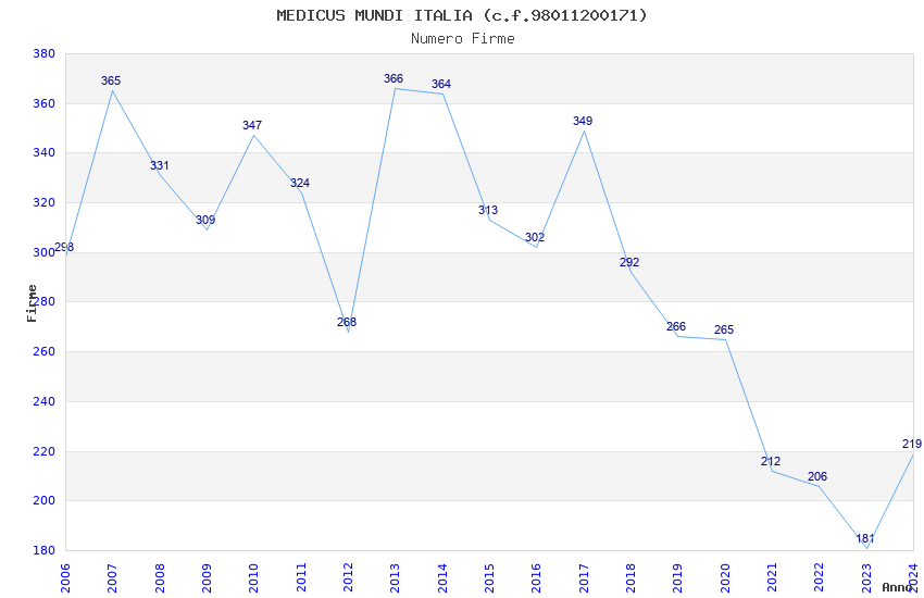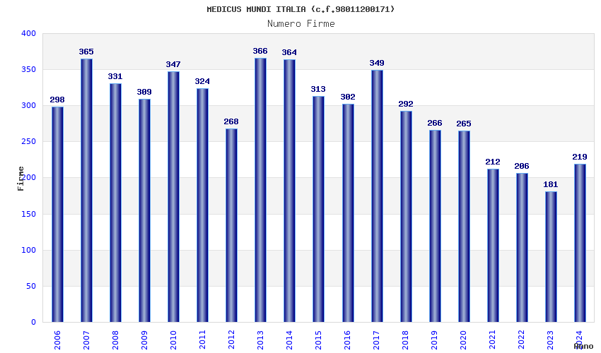 | Anno | Firme | Importi | Media | Naz. | Reg. | Prov. | Comu. |