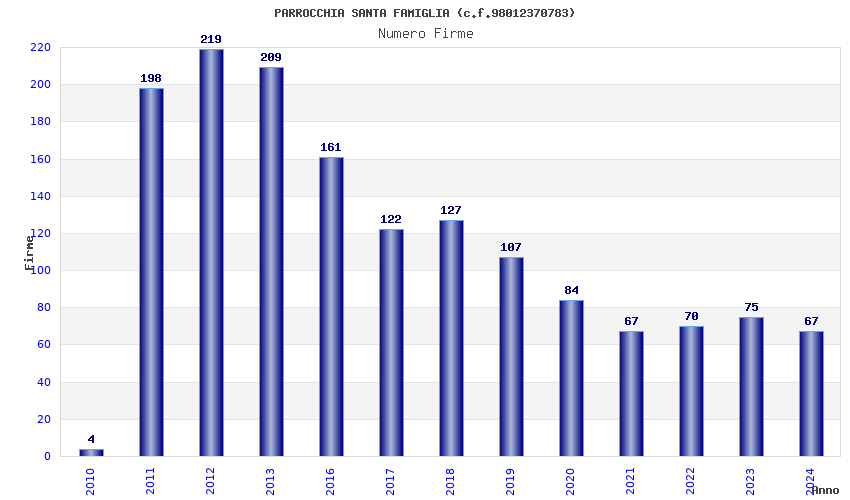 | Anno | Firme | Importi | Media | Naz. | Reg. | Prov. | Comu. |