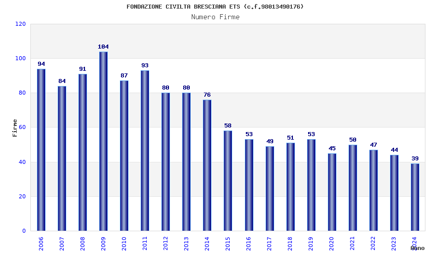 | Anno | Firme | Importi | Media | Naz. | Reg. | Prov. | Comu. |