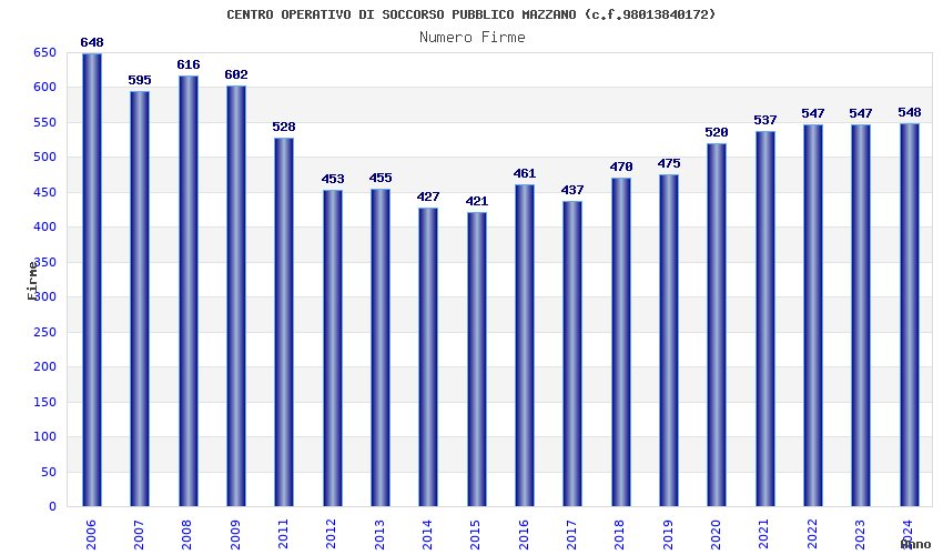 | 2024 | 548 | 16.697,52 | 30,47 | 2.529 | 629 | 54 | 1 |