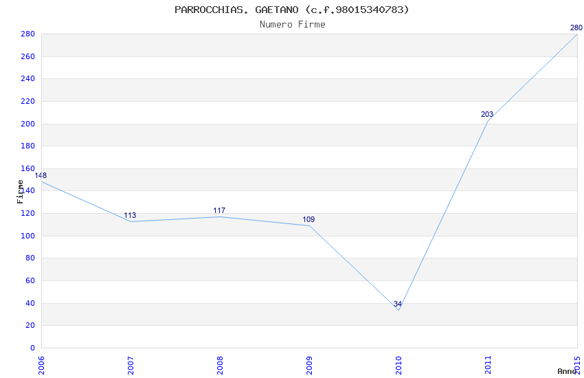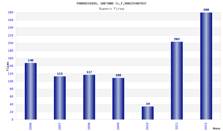 | Anno | Firme | Importi | Media | Naz. | Reg. | Prov. | Comu. |