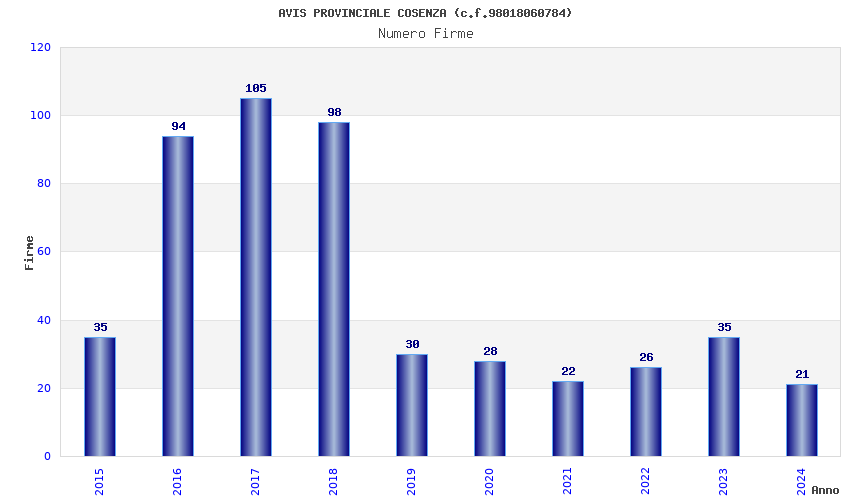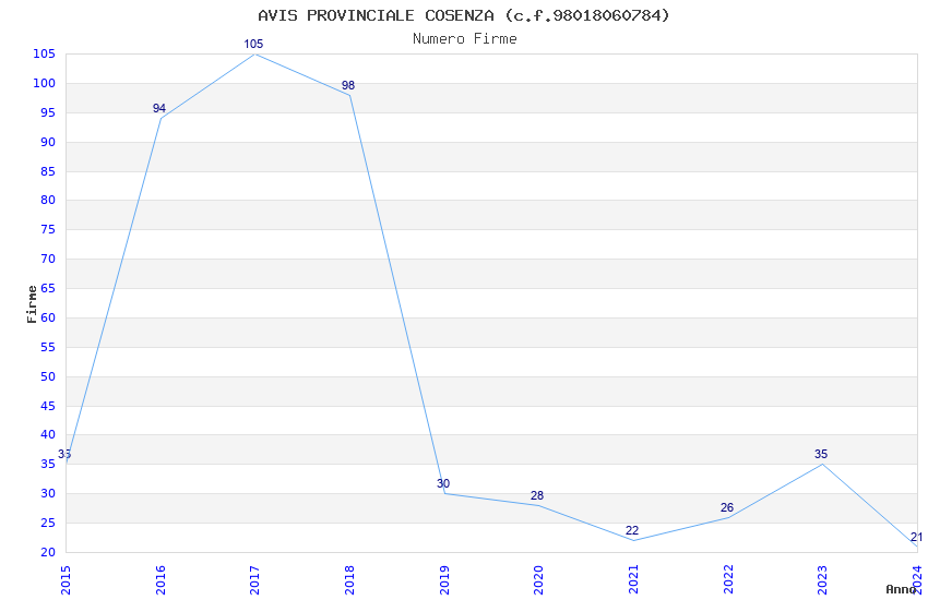 | 2017 | 105 | 2.358,63 | 22,46 | 20.993 | 439 | 163 | 48 |