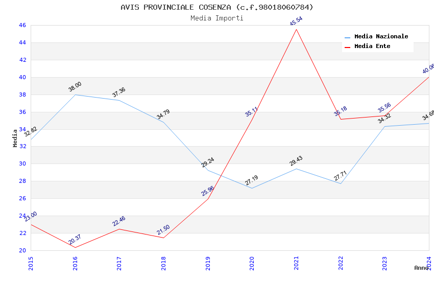 | Anno | Firme | Importi | Media | Naz. | Reg. | Prov. | Comu. |