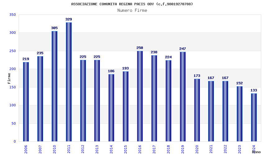 | Anno | Firme | Importi | Media | Naz. | Reg. | Prov. | Comu. |