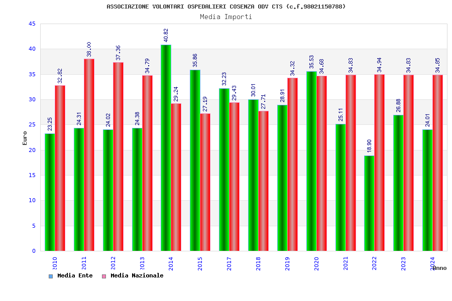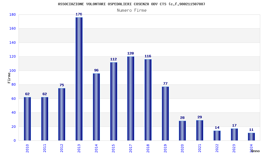 | Anno | Firme | Importi | Media | Naz. | Reg. | Prov. | Comu. |