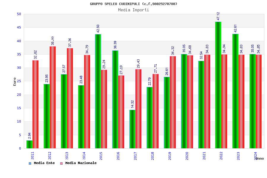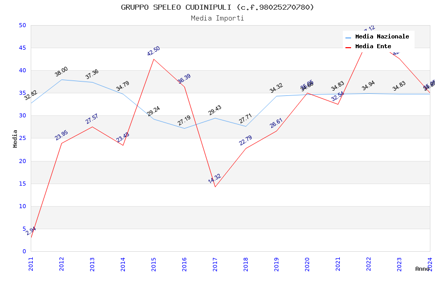 | Anno | Firme | Importi | Media | Naz. | Reg. | Prov. | Comu. |