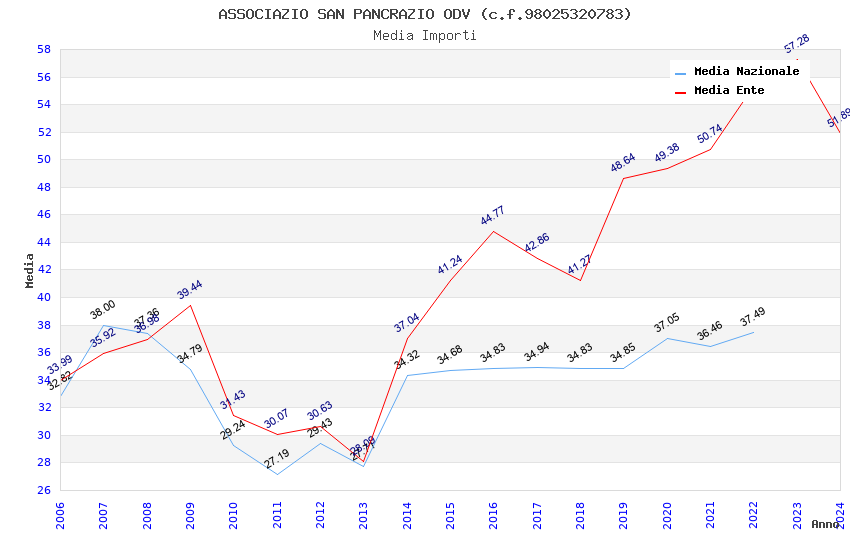 | Anno | Firme | Importi | Media | Naz. | Reg. | Prov. | Comu. |