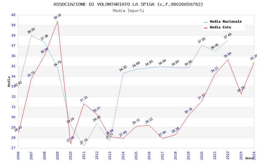 | Anno | Firme | Importi | Media | Naz. | Reg. | Prov. | Comu. |