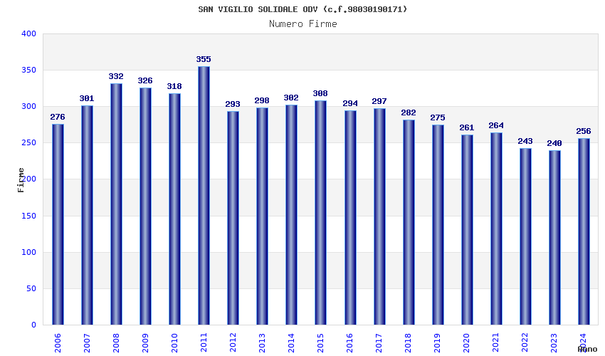 | Anno | Firme | Importi | Media | Naz. | Reg. | Prov. | Comu. |