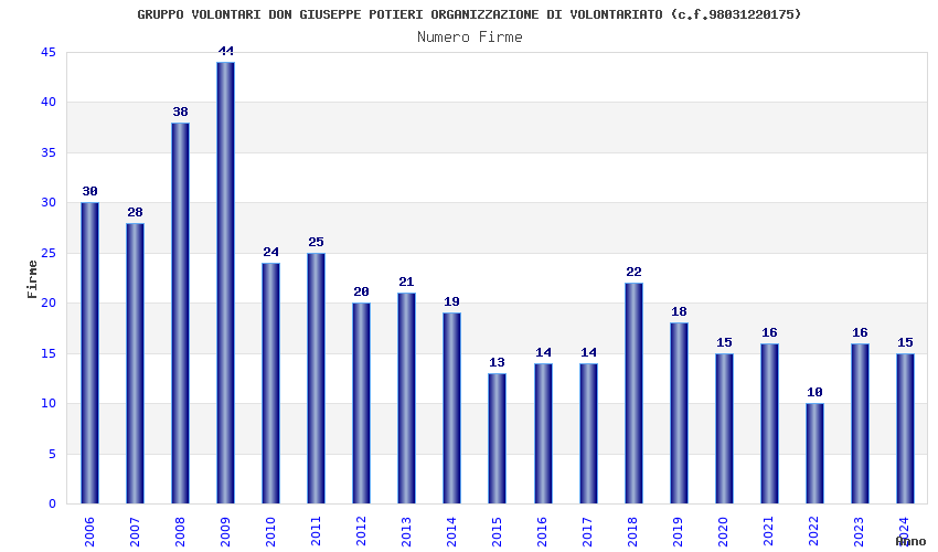 | Anno | Firme | Importi | Media | Naz. | Reg. | Prov. | Comu. |