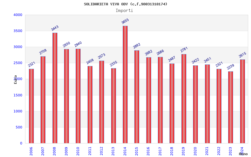 | Anno | Firme | Importi | Media | Naz. | Reg. | Prov. | Comu. |
