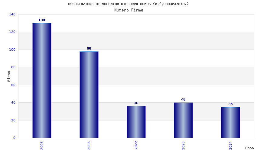 | Anno | Firme | Importi | Media | Naz. | Reg. | Prov. | Comu. |