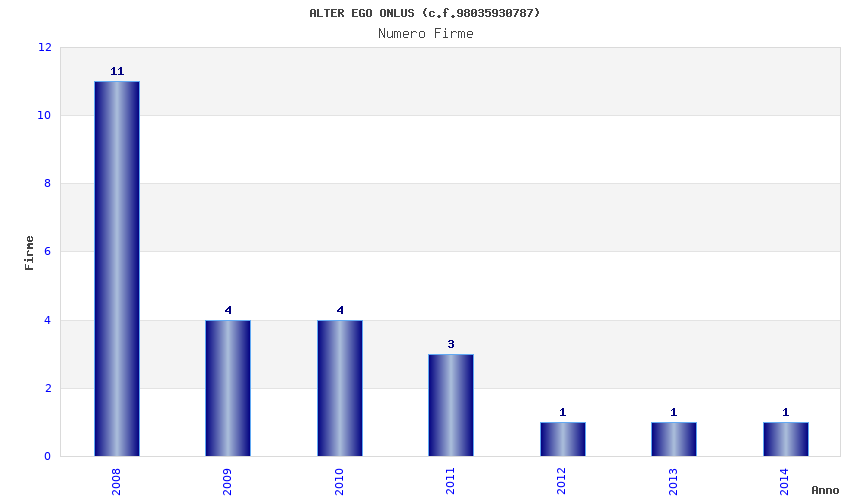 | Anno | Firme | Importi | Media | Naz. | Reg. | Prov. | Comu. |
