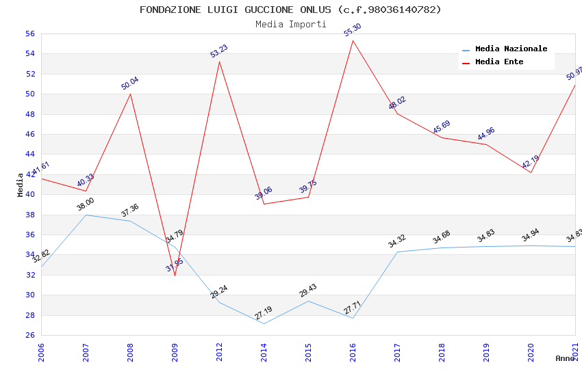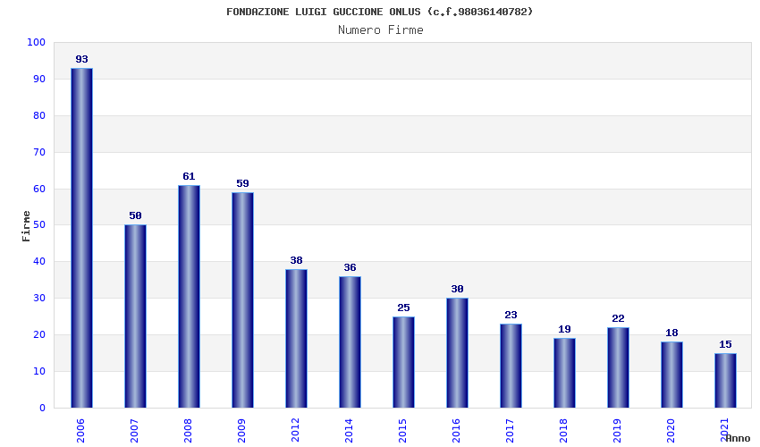 | Anno | Firme | Importi | Media | Naz. | Reg. | Prov. | Comu. |