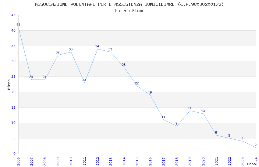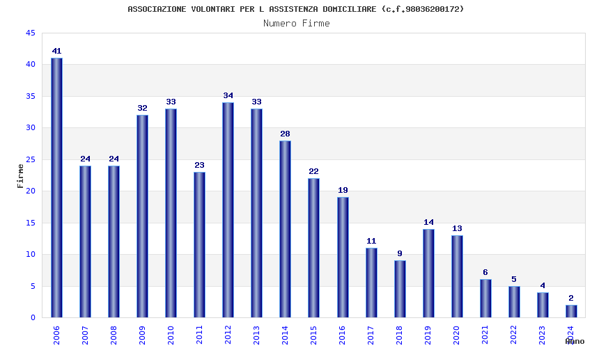 | Anno | Firme | Importi | Media | Naz. | Reg. | Prov. | Comu. |