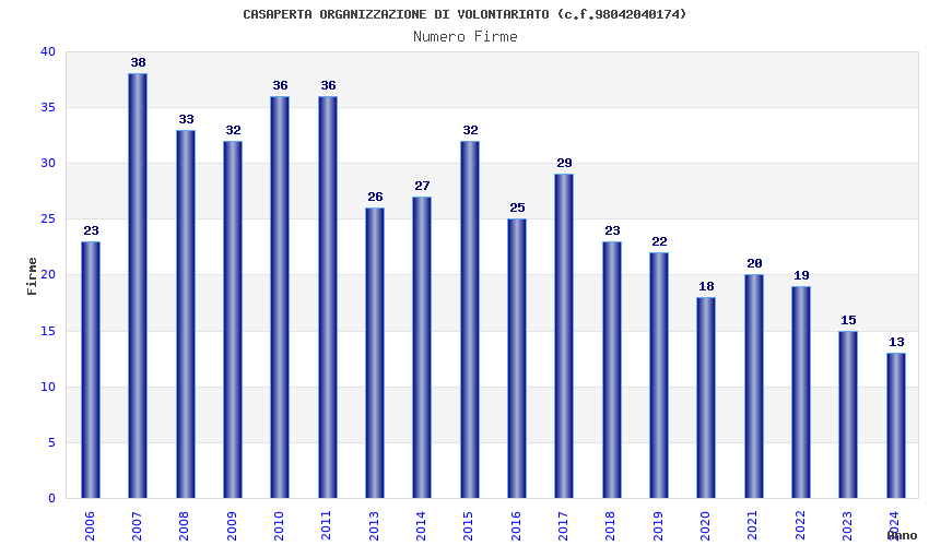 | Anno | Firme | Importi | Media | Naz. | Reg. | Prov. | Comu. |