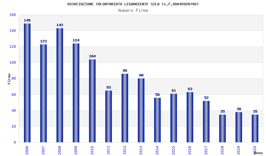 | Anno | Firme | Importi | Media | Naz. | Reg. | Prov. | Comu. |