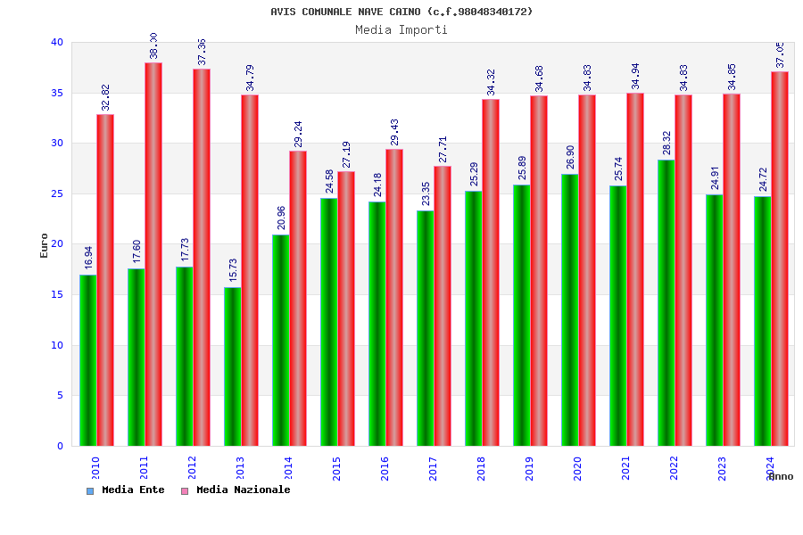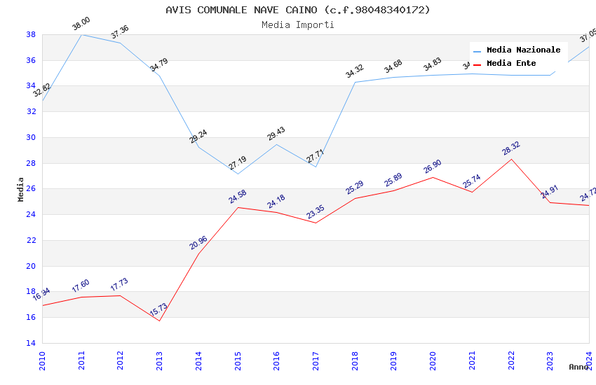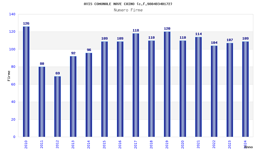 | Anno | Firme | Importi | Media | Naz. | Reg. | Prov. | Comu. |