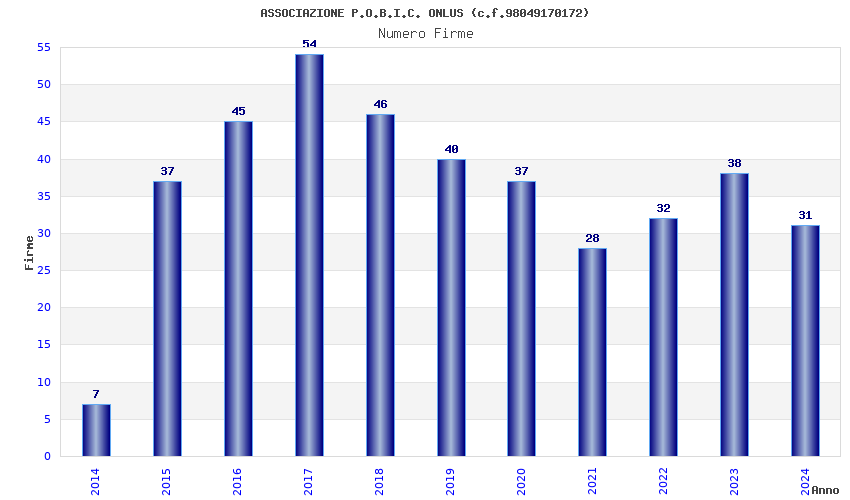 | Anno | Firme | Importi | Media | Naz. | Reg. | Prov. | Comu. |
