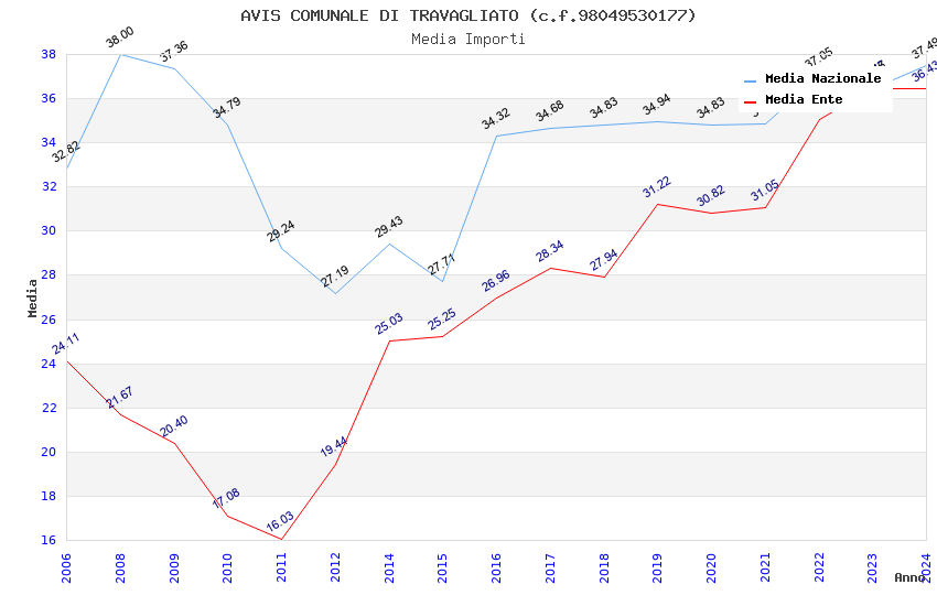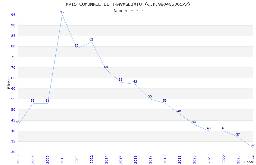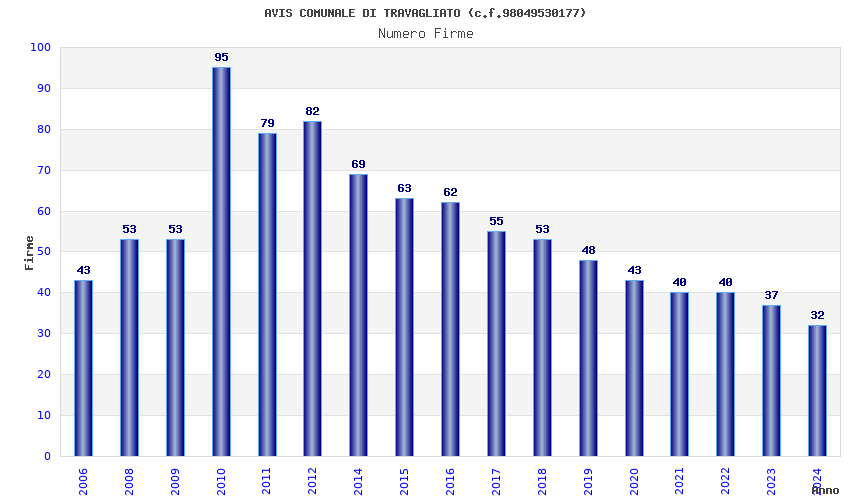 | Anno | Firme | Importi | Media | Naz. | Reg. | Prov. | Comu. |