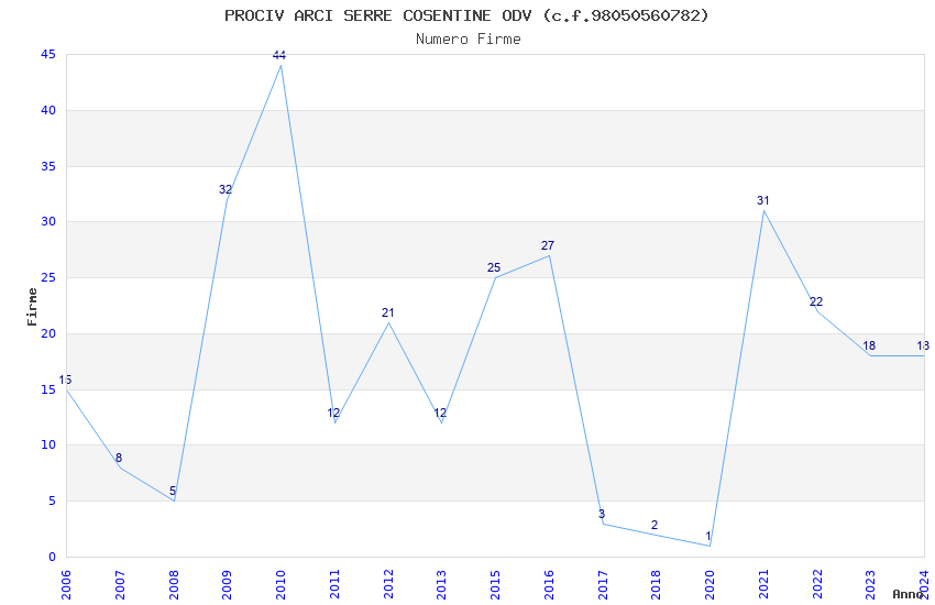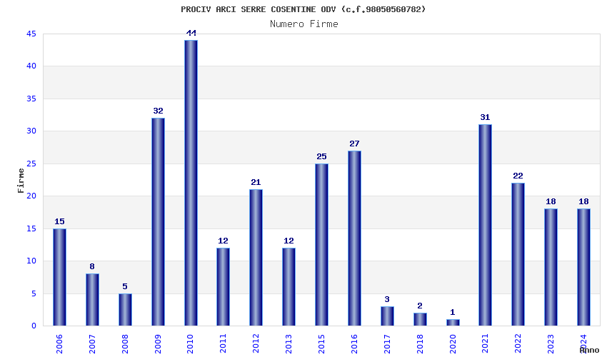 | 2010 | 44 | 1.510,85 | 34,34 | 19.413 | 391 | 130 | 3 |