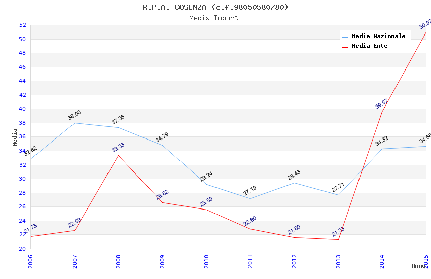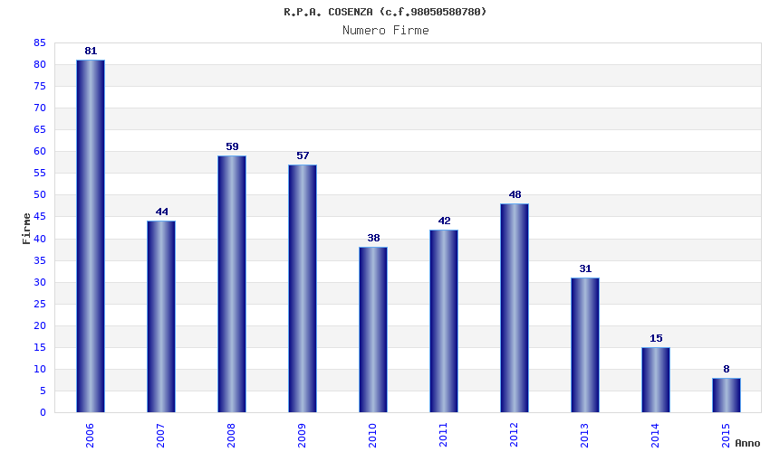 | Anno | Firme | Importi | Media | Naz. | Reg. | Prov. | Comu. |
