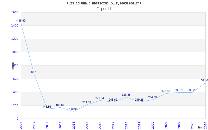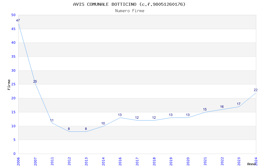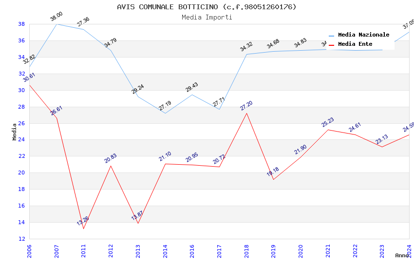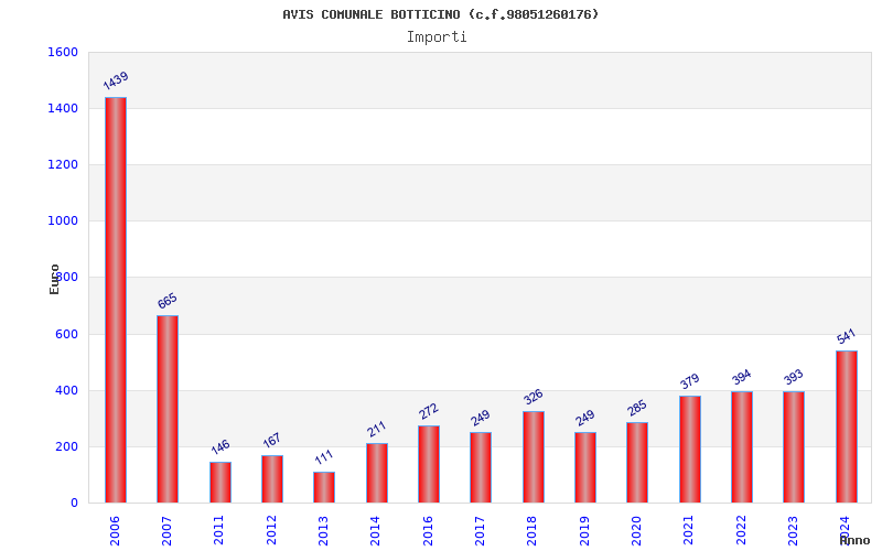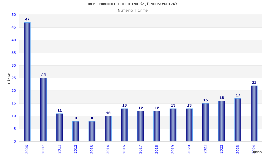 | Anno | Firme | Importi | Media | Naz. | Reg. | Prov. | Comu. |