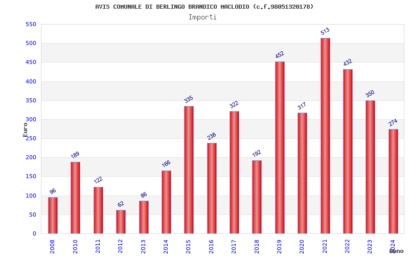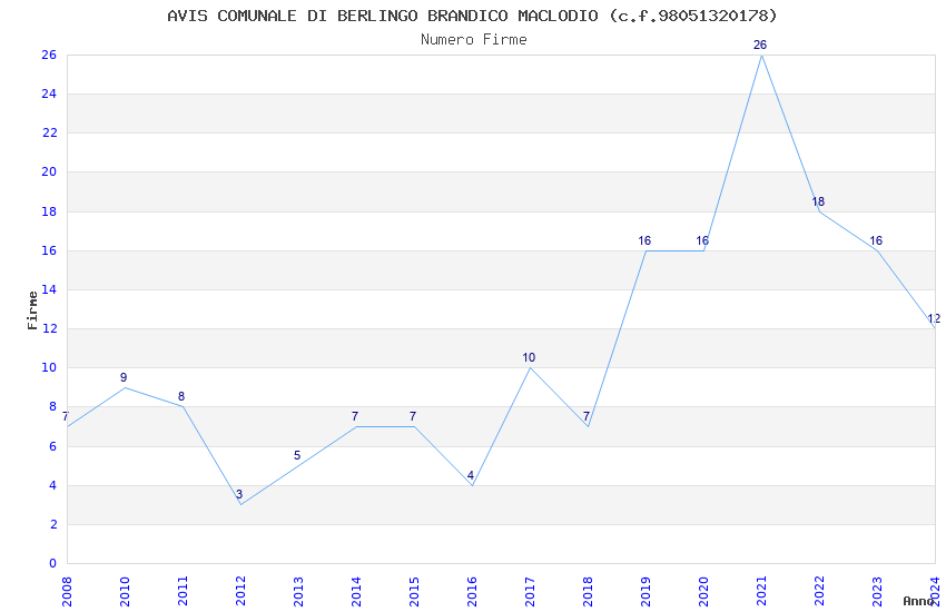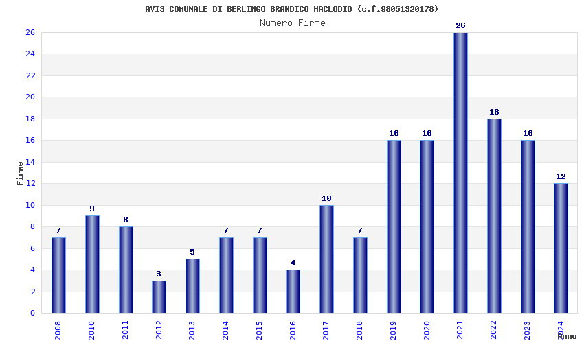 | Anno | Firme | Importi | Media | Naz. | Reg. | Prov. | Comu. |