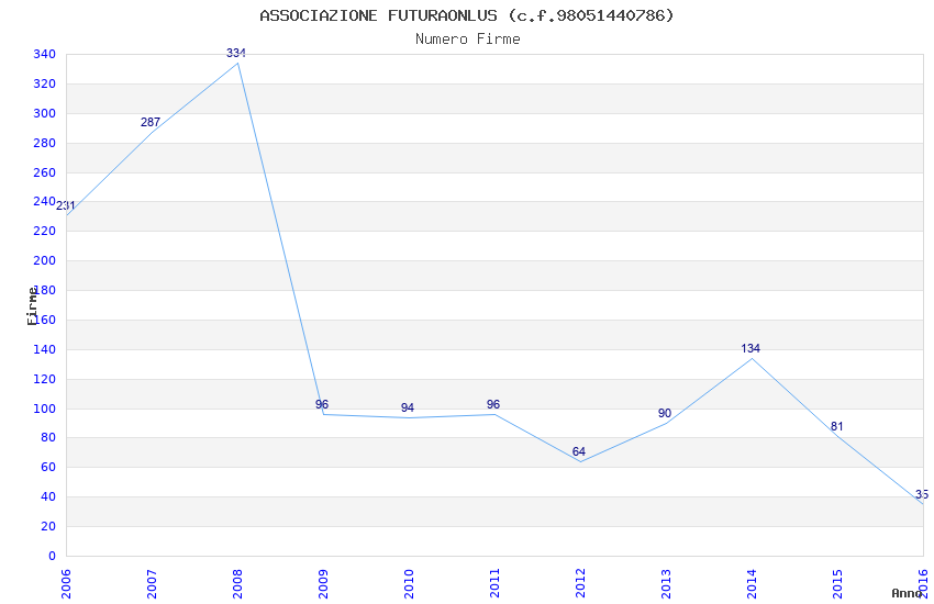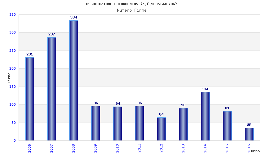 | Anno | Firme | Importi | Media | Naz. | Reg. | Prov. | Comu. |