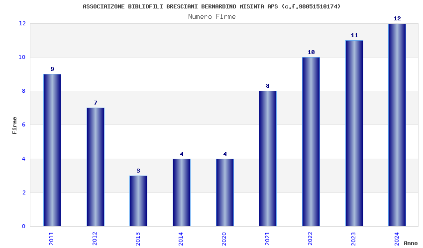 | Anno | Firme | Importi | Media | Naz. | Reg. | Prov. | Comu. |
