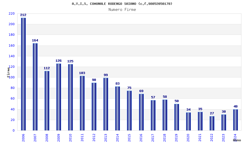 | Anno | Firme | Importi | Media | Naz. | Reg. | Prov. | Comu. |