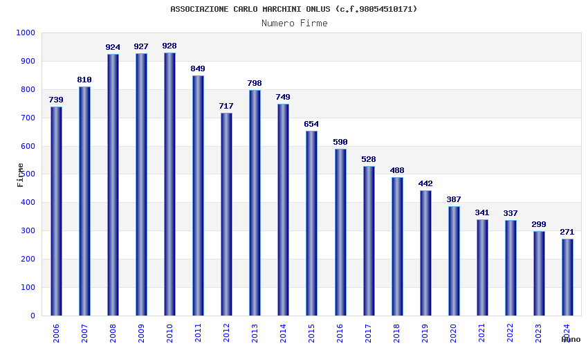| Anno | Firme | Importi | Media | Naz. | Reg. | Prov. | Comu. |