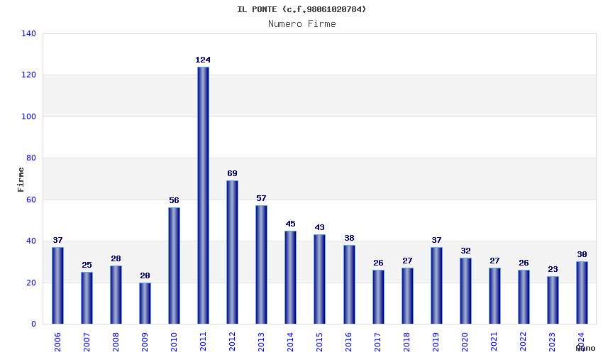 | Anno | Firme | Importi | Media | Naz. | Reg. | Prov. | Comu. |