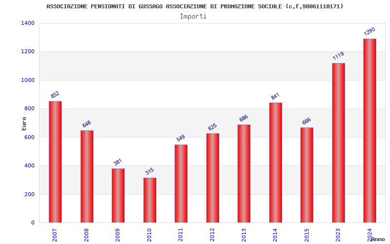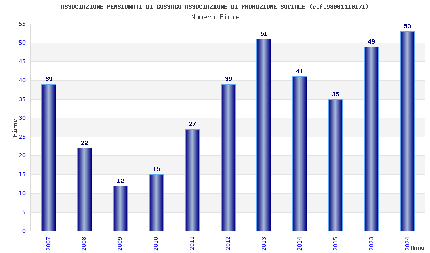 | Anno | Firme | Importi | Media | Naz. | Reg. | Prov. | Comu. |