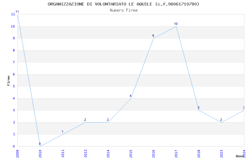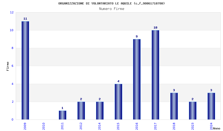| Anno | Firme | Importi | Media | Naz. | Reg. | Prov. | Comu. |