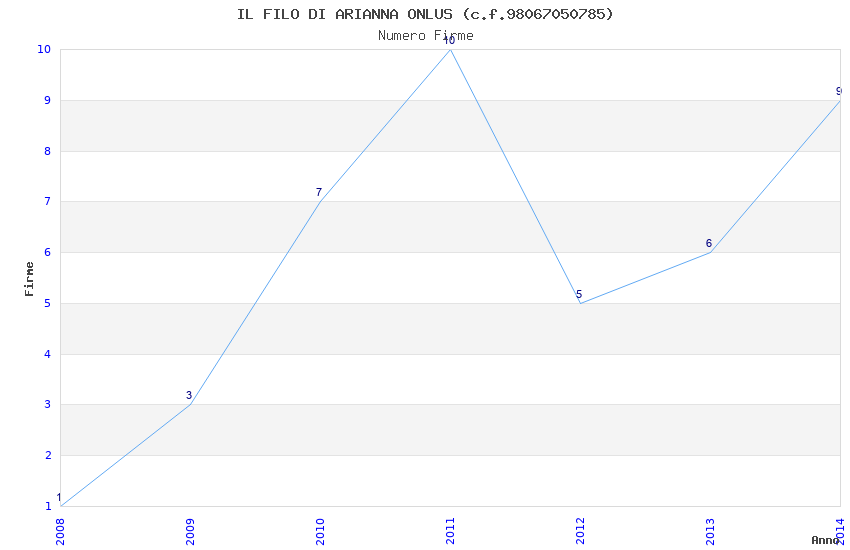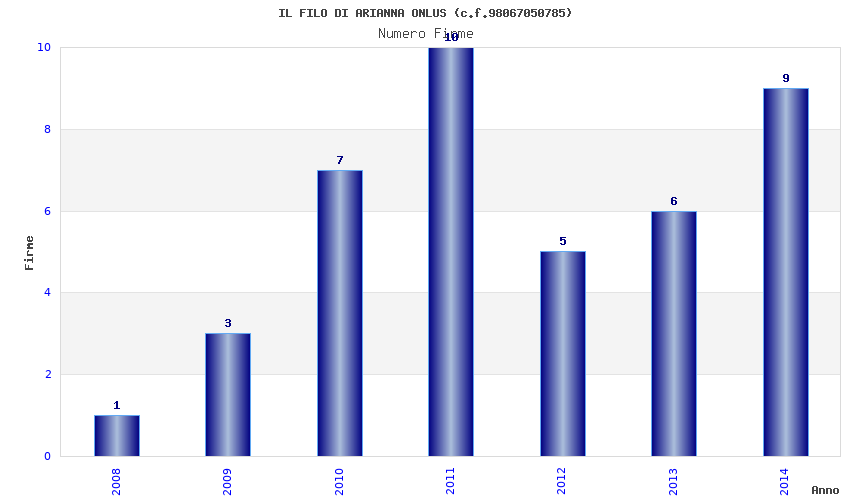 | Anno | Firme | Importi | Media | Naz. | Reg. | Prov. | Comu. |