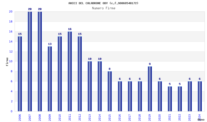 | Anno | Firme | Importi | Media | Naz. | Reg. | Prov. | Comu. |