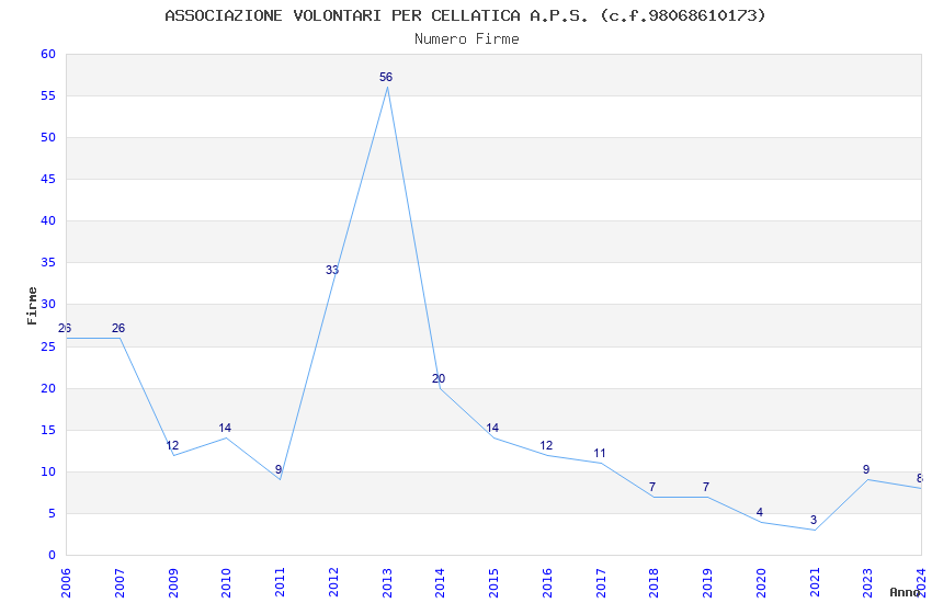 | 2013 | 56 | 1.167,39 | 20,85 | 25.140 | 5.624 | 722 | 4 |