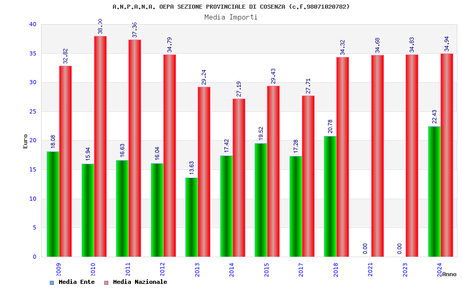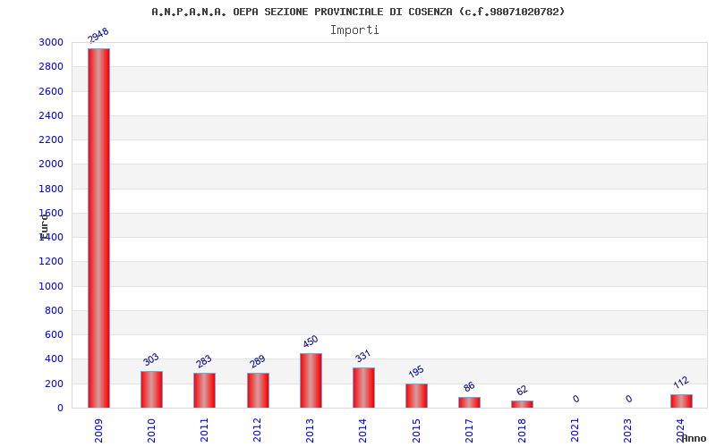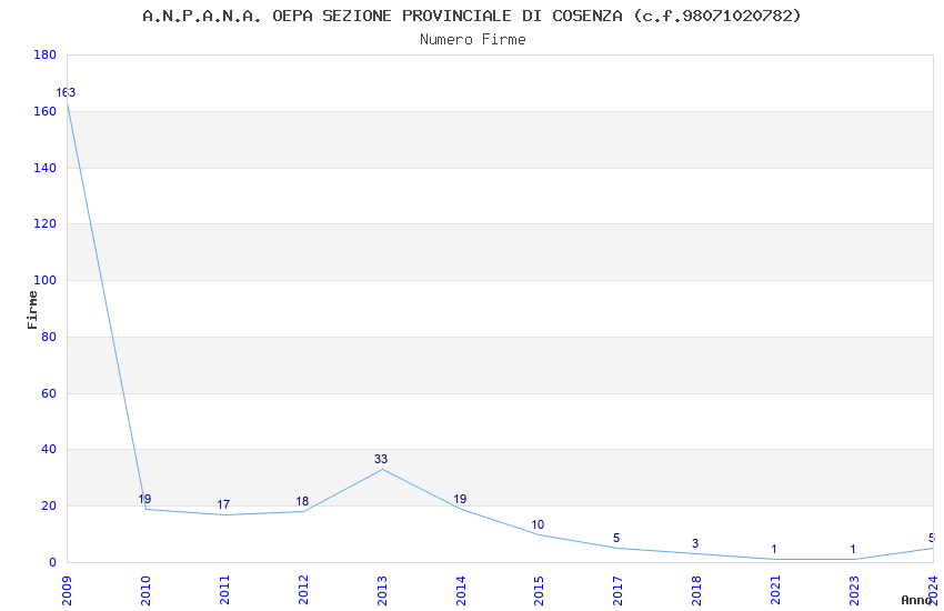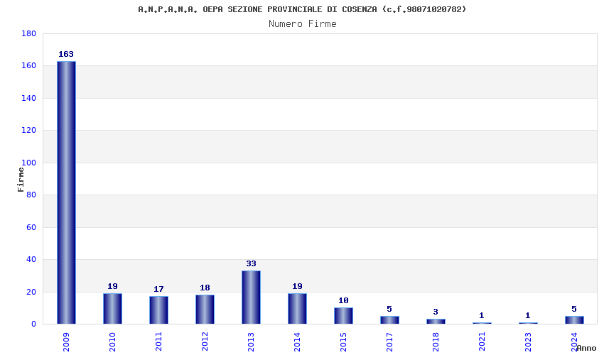 | Anno | Firme | Importi | Media | Naz. | Reg. | Prov. | Comu. |