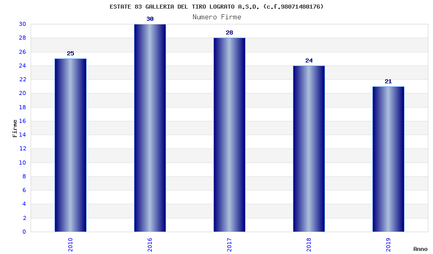 | Anno | Firme | Importi | Media | Naz. | Reg. | Prov. | Comu. |