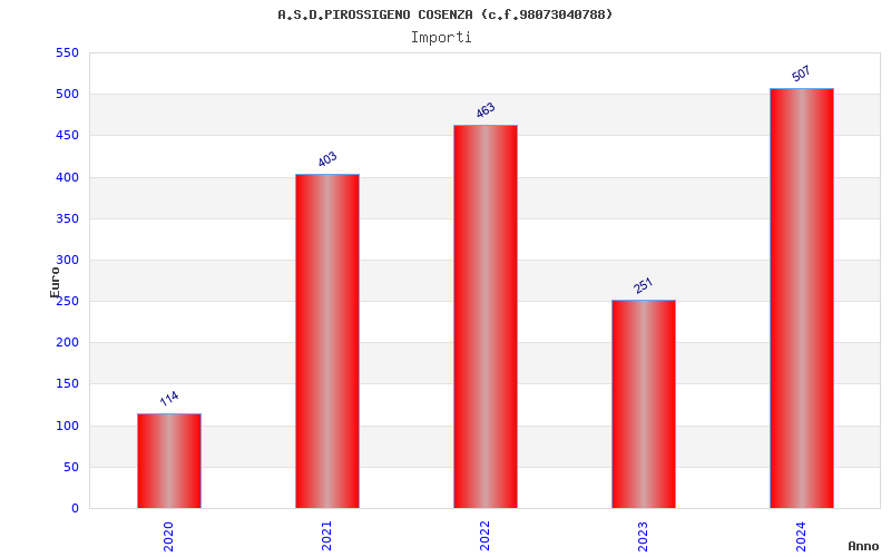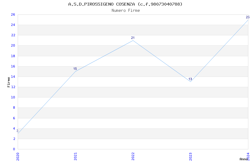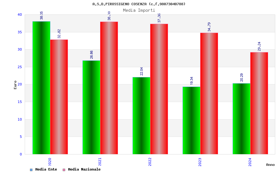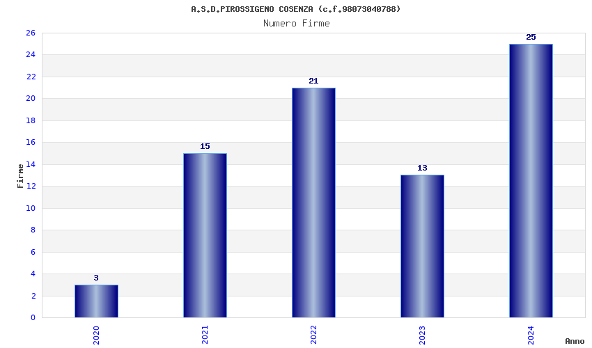 | Anno | Firme | Importi | Media | Naz. | Reg. | Prov. | Comu. |
