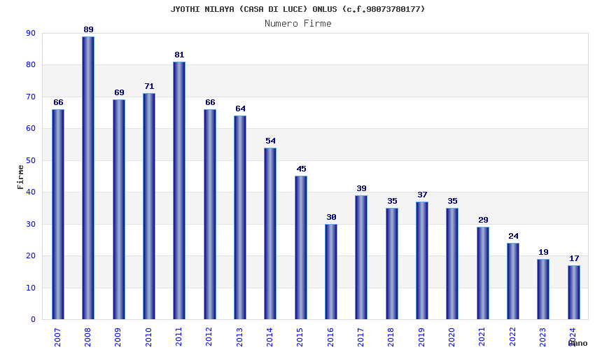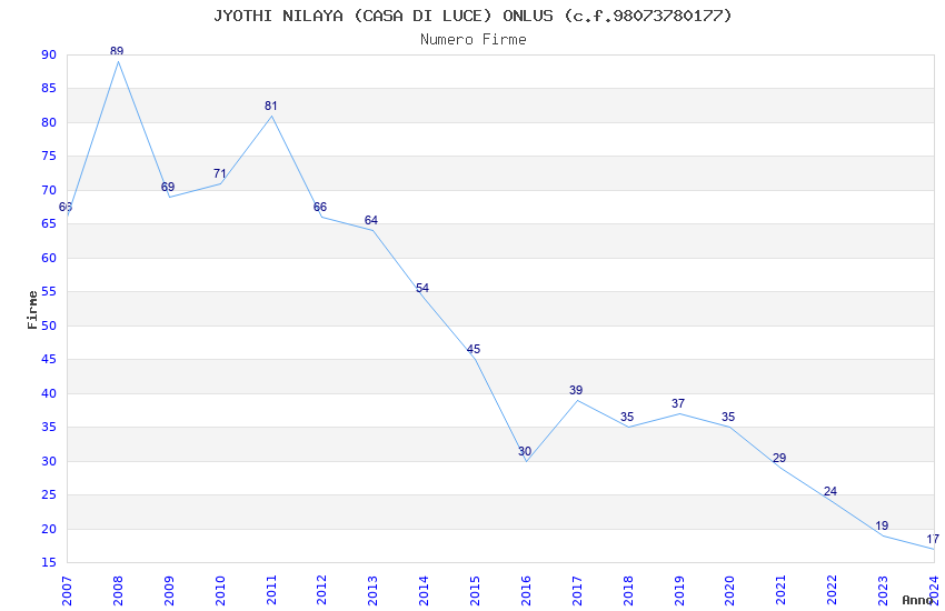 | Anno | Firme | Importi | Media | Naz. | Reg. | Prov. | Comu. |